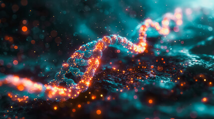 Twisting dna helix and digital code, symbolizing genetics and innovation