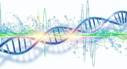 Glowing dna helix with digital wave background for biotechnology themes