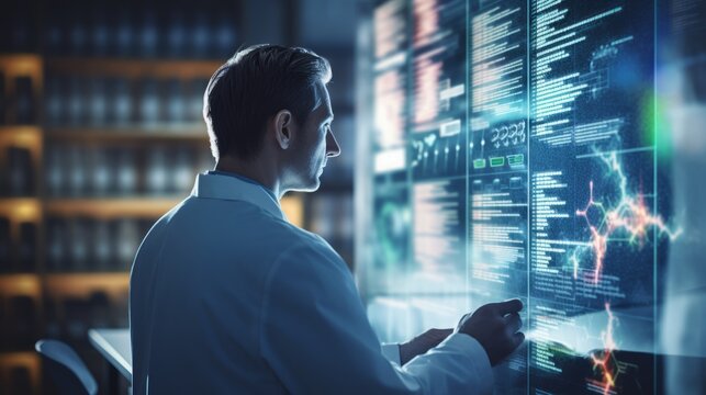 Virtual dna sequence with digital analysis in futuristic laboratory