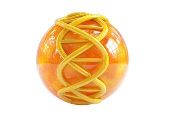 A golden dna double helix structure on a white background with intricate details and a smooth texture