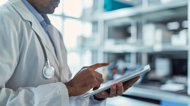 Futuristic Medical Lab with Glowing DNA Strands Analyzed by AI Driven Computers Symbolizing Breakthroughs in Personalized Medicine and Genetic