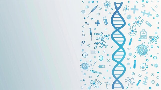 Blue dna double helix illustration on futuristic medical background with copy space for biotechnology, genetic research, and healthcare concept
