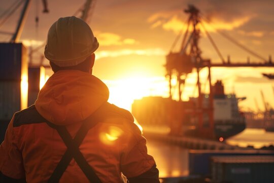 Logistics Coordinator Directing Cargo Operations at Seaport during Sunset - Leadership and Coordination for Maritime Shipping