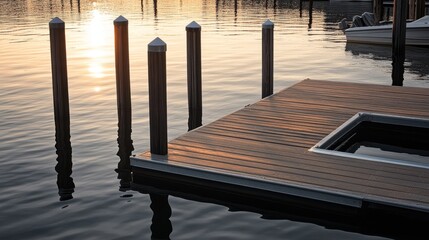 Foggy wooden dock by tranquil lakeside evoking serenity