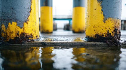 Sharpened tree trunks are stacked in front of old warehouses Pile foundations Coastal fortifications Sheds Listed Port Forwarding Dam Building materials Pile drivers