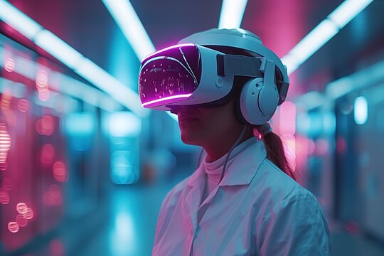 Doctor checking brain testing result with computer interface, Abstract Innovative technology in science and medicine concept