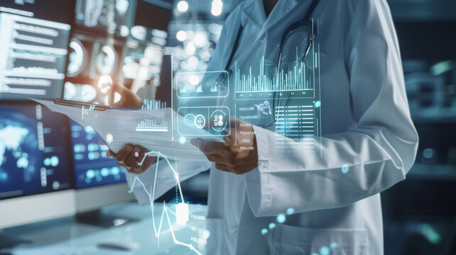 Doctor Analyzing Medical Data Visualization And Statistics Images