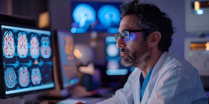 Neurologist Utilizing Advanced Visualization Technology to Analyze Brain Nerve Activity for Enhancing Treatments of Degenerative Neural Disorders