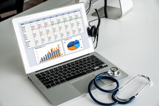 Doctors Analyzing Financial Data In Hospital Setting Images