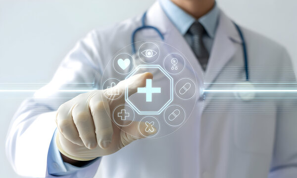 Doctor uses futuristic interface for advanced medical diagnostics and patient care