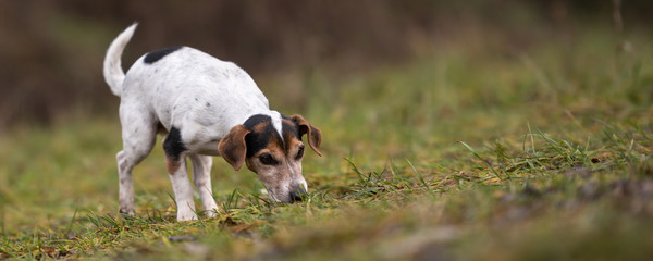 Crossbreed, 5 months old, sniffing the ground, tracking