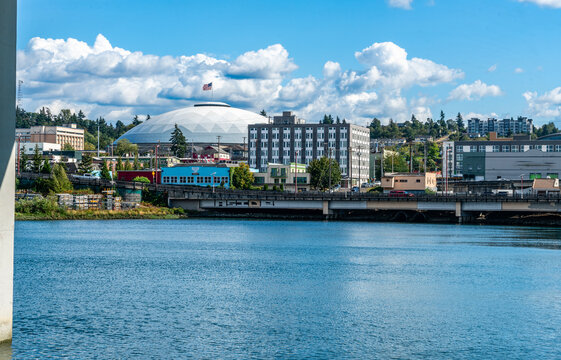 Encapsulating futuristic skyline under glass dome on circular platform with neon grid glow