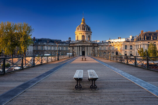 Pont des Arts bridge over the Seine river in Paris at sunrise. France