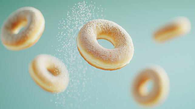 3d rendering of a bitten inflatable donut float with colorful sprinkles, isolated on a transparent background