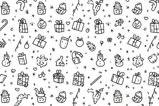 Festive Christmas doodle pattern hand-drawn vector illustration with holiday elements perfect for backgrounds and wrapping paper