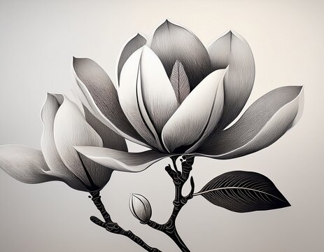 a simplified magnolia design in monochrome palette minimal art white base