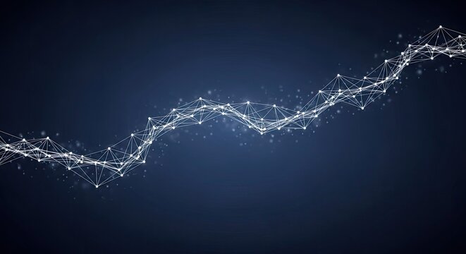 Dotted waveform flowing across hud with binary code and glitch cyber data visualization