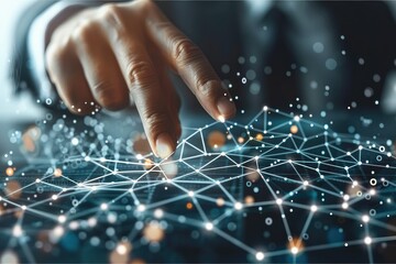 Intricate lines and dots creating a glowing abstract network on a dark background, symbolizing connectivity and advanced digital technology