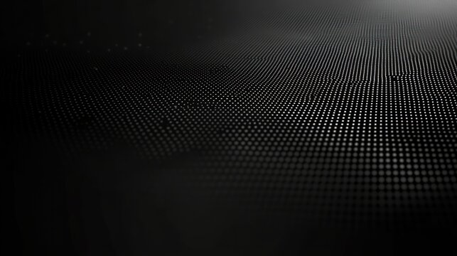 dark surface covered with a grid of glowing small white dots creating a wave-like pattern and a futuristic digital texture