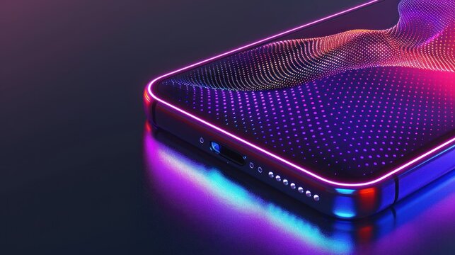 Futuristic Smartphone with Neon Lights and Dot Matrix Display HighTech Device Modern Technol