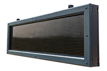 Angled view of a dark electronic dot display screen isolated with transparent background