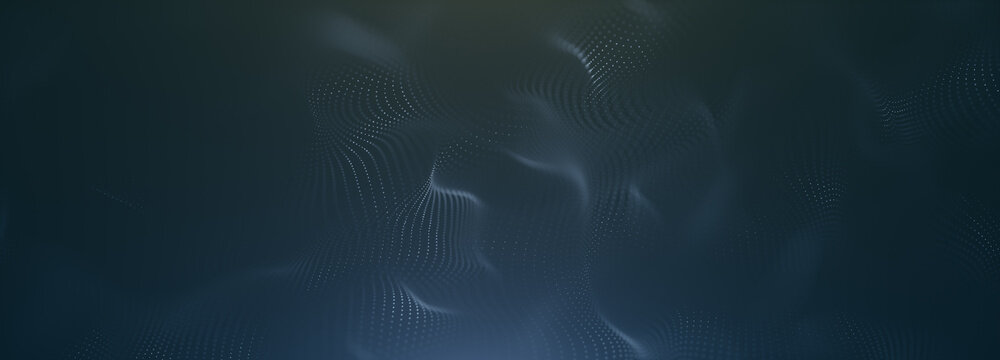 Abstract colorful digital particles wave with bokeh and light background, 3d render wave line dot background, line wave light glowing effect particular background.