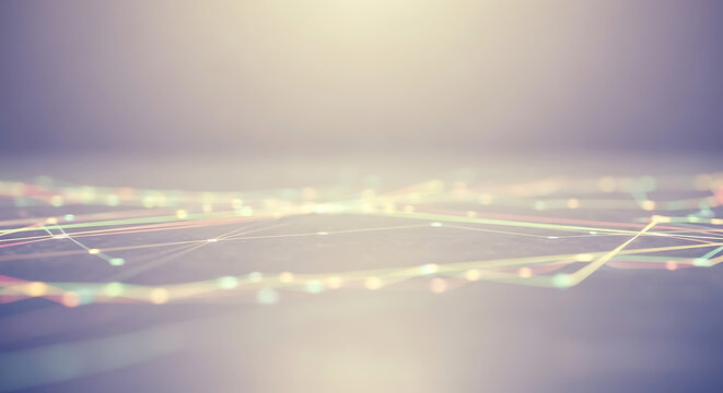 Abstract network of connected dots and lines over a blurred, light background with a soft, dreamy aesthetic.