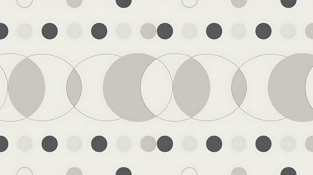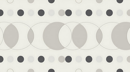 Geometric pattern with overlapping circles and rows of dots in neutral tones