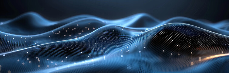 Abstract digital wave composed of glowing blue particles and dots on a dark background