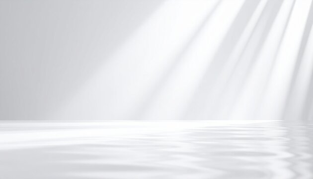 潤いや透明感イメージの水面のある部屋 光が差し込む白い空間にできた柔らかな反射と影の抽象背景
