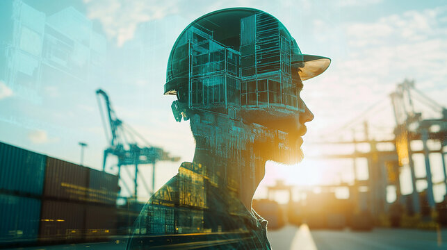 Double exposure Engineer hardhat ensures the use of machine learning for enhanced customs clearance processes.