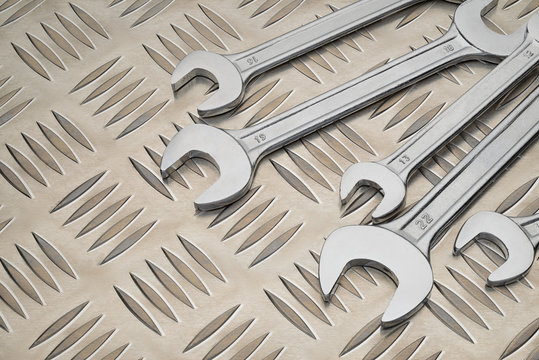 A realistic metalic double ended open wrench with a sleek silver finish,essential hand tool