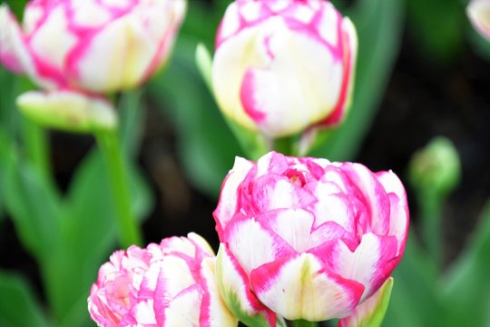 White with red stripe on petal tulip. Red and white striped tulip flower. Close up.