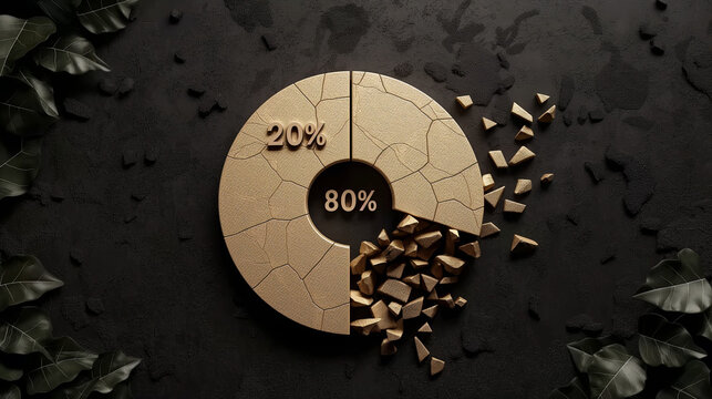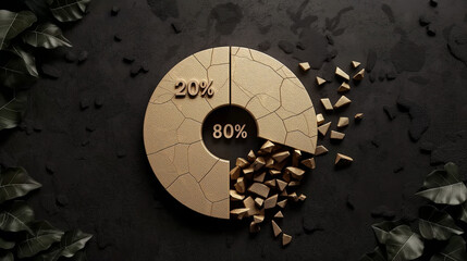 Cracked Gold Pie Chart Showing 80 Percent and 20 Percent on Black Background