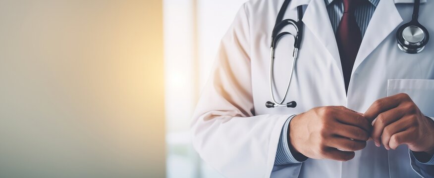 Close up of doctor with medic uniform. Copy space for text