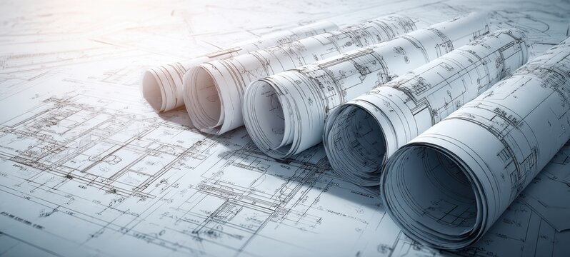 business woman hand working and laptop with on on architectural project at construction site at desk in modern office