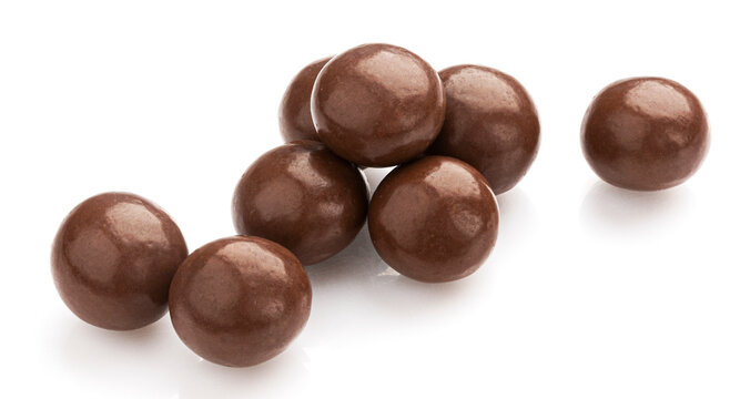 Homemade cocoa balls, chocolate dragee isolated on white background