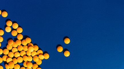 Bright multi-colored candies. Round dragee top view. Sweet colored spherical candies