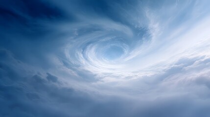 A powerful swirling vortex of clouds forms a dramatic natural phenomenon in the bright sky