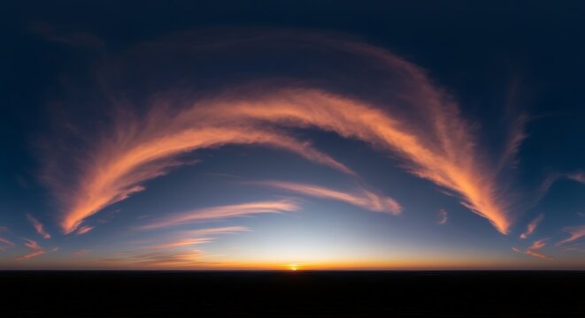 Dramatic panoramic view of dynamic cloud formations against a deep blue sky , powerful, texture, image