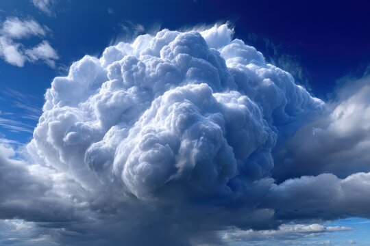 Massive cumulonimbus cloud formation towering in the blue sky during daylight hours