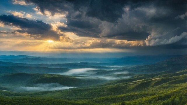 Dramatic scene with dark clouds moving over the mountains, beautiful nature background