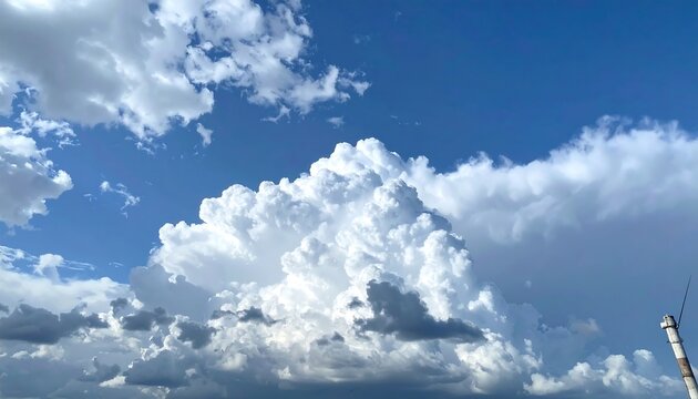Dramatic cumulus cloudscape against clear blue sky