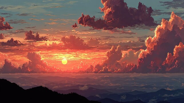 Stunning sunset over mountain range with dramatic clouds
