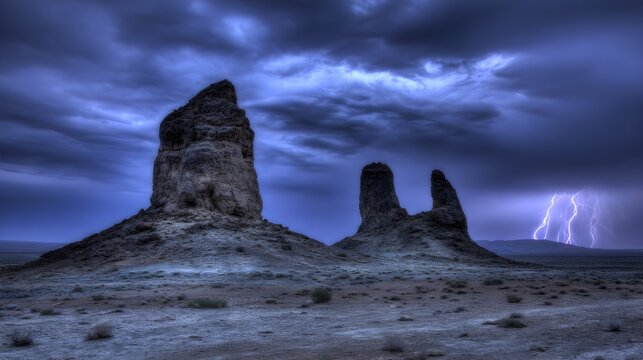 Dramatic lightning strike over majestic mountain river during storm