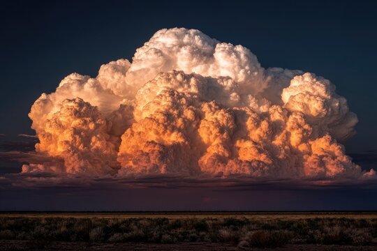 Majestic cumulonimbus cloud illuminated in dark sky