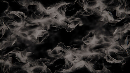Dense black smoke clouds swirling dynamically on a dark background, creating dramatic atmosphere with abstract motion and large copy space for design use.