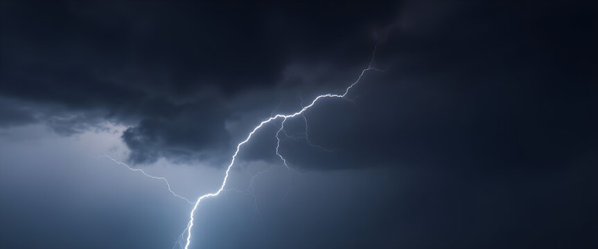 Dramatic lightning bolt striking through stormy sky