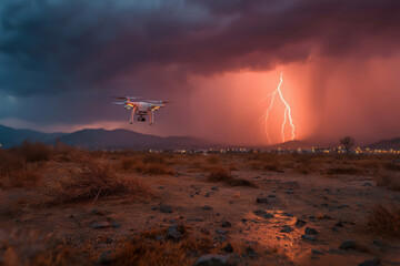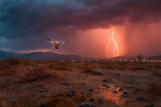 Dramatic lightning storm over desert landscape