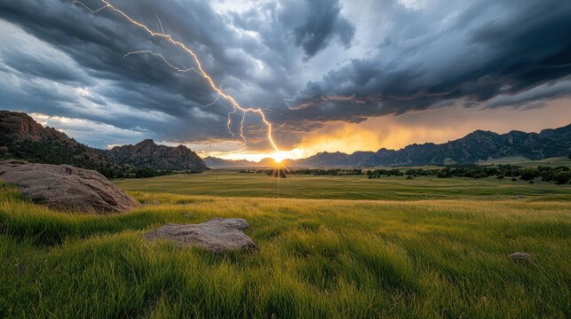 Dramatic Lightning Storm Over Rocky Mountain Images